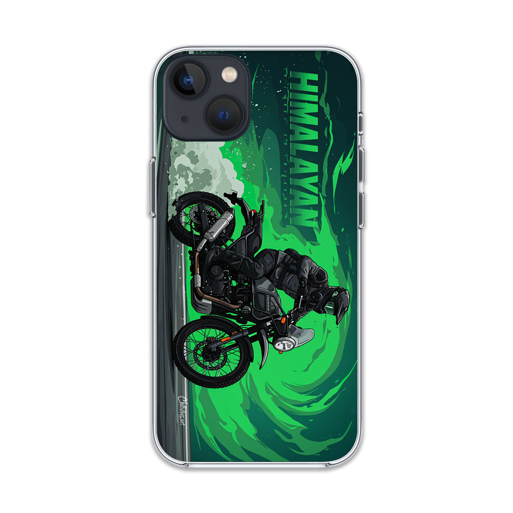 This product is a rugged phone case celebrating the spirit of the Royal Enfield Himalayan, designed for adventurers and explorers who embrace off-road challenges. The detailed illustration features the iconic Himalayan motorcycle, embodying durability and the call of the wild.